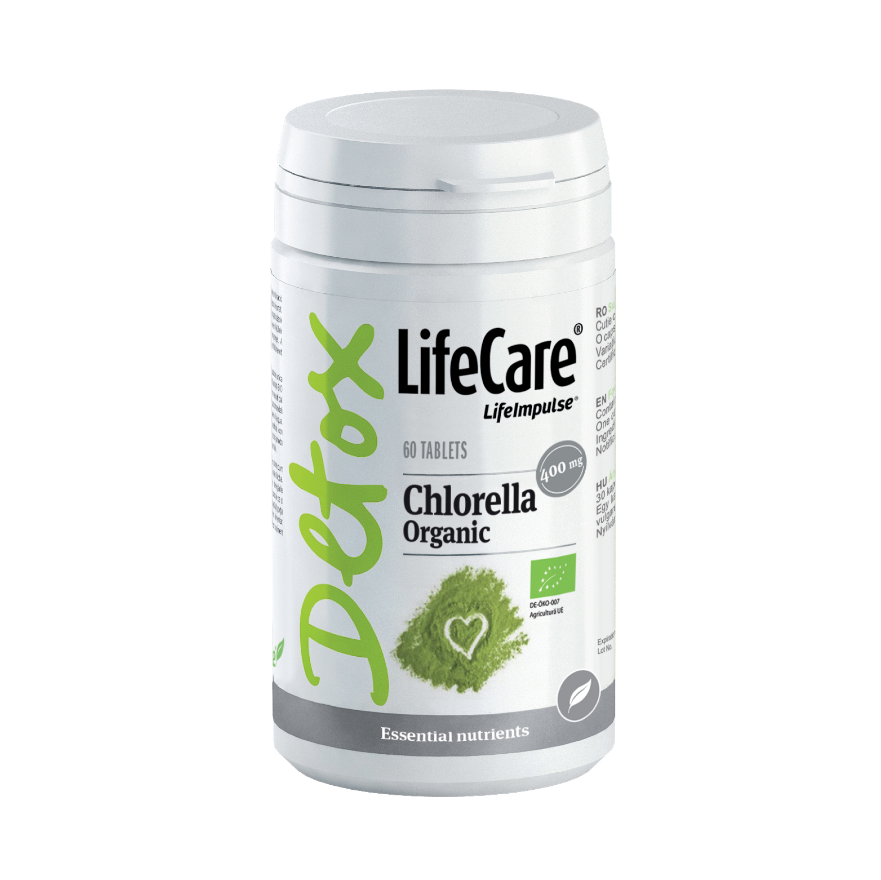 Chlorella Ecologică ajută la detoxifierea organismului, eliminând toxinele și metalele grele, îmbunătățind oxigenarea celulelor și revitalizându-le, oferind un plus de energie și sprijin pentru imunitate.