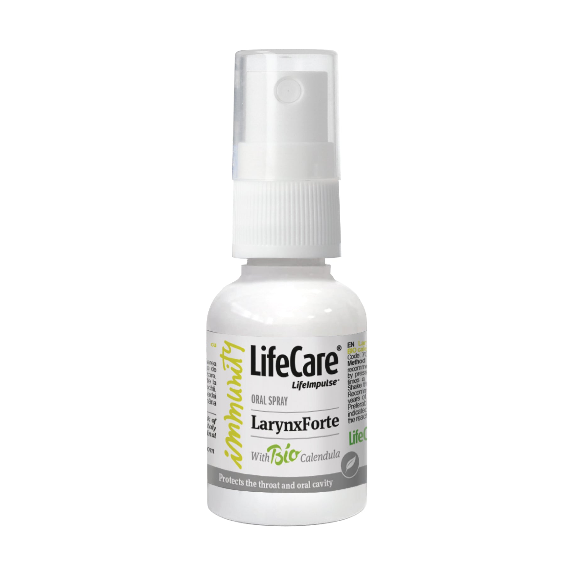 LarynxForte, spray pentru gât cu gălbenele BIO, calmează iritațiile și durerile de gât, ușurând respirația și regenerând zona iritată cu ingrediente naturale precum galbenele BIO, scorțișoară, mentă și eucalipt. Spray-ul ideal pentru confortul tău respirator!