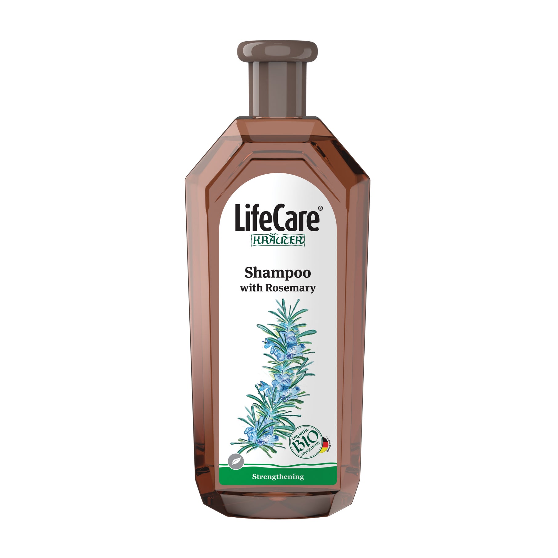 Șamponul fortifiant are la bază extractul de rozmarin BIO, care stimulează circulația la nivelul scalpului. Are proprietăți fortifiante asupra rădăcinii firelor de păr. Activii din compoziția șamponului întârzie apariția firelor albe de păr. Regenerează părul de la rădăcină la vârfuri.